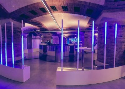 For the Vmware Executive Summit, which took place simultaneously in various locations; Hospital de Sant Pau, Hotel Renaissance, and Cocina de los Hermanos Torres, at Octo we highlighted our ability to integrate audiovisual and branding elements precisely and technically. In the cozy plenary at Sant Pau, we designed a custom wooden stage and used curved LED screens to adapt to the space’s own shapes. To decorate the ceiling of the room, adding textures, color, and dynamic movement, we used moving spot and wash heads.